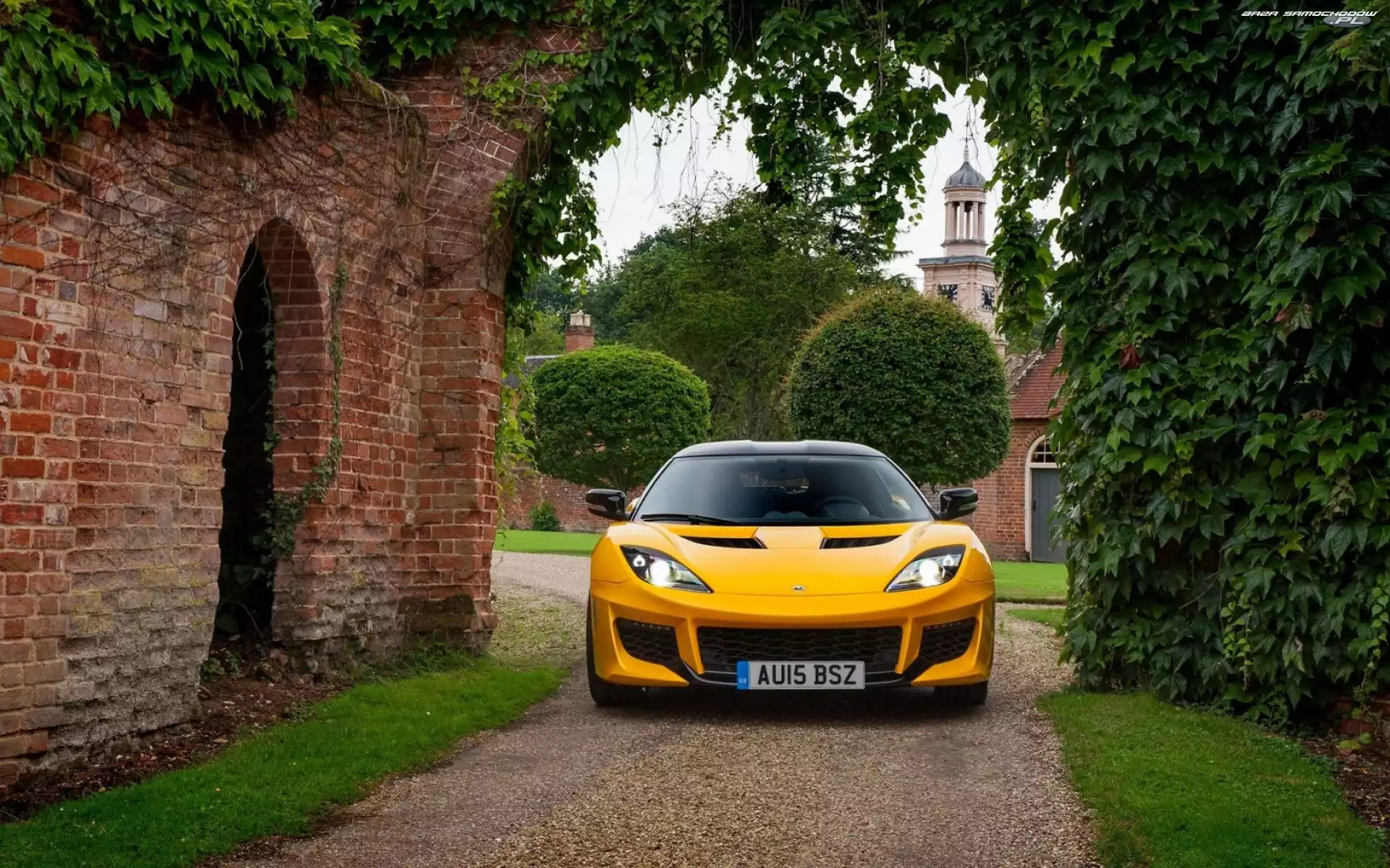 Samochód: Mur, Winorośl, Droga, Dzika, Żółty, Samochód, Drzewa, Evora, Lotus, Brama
