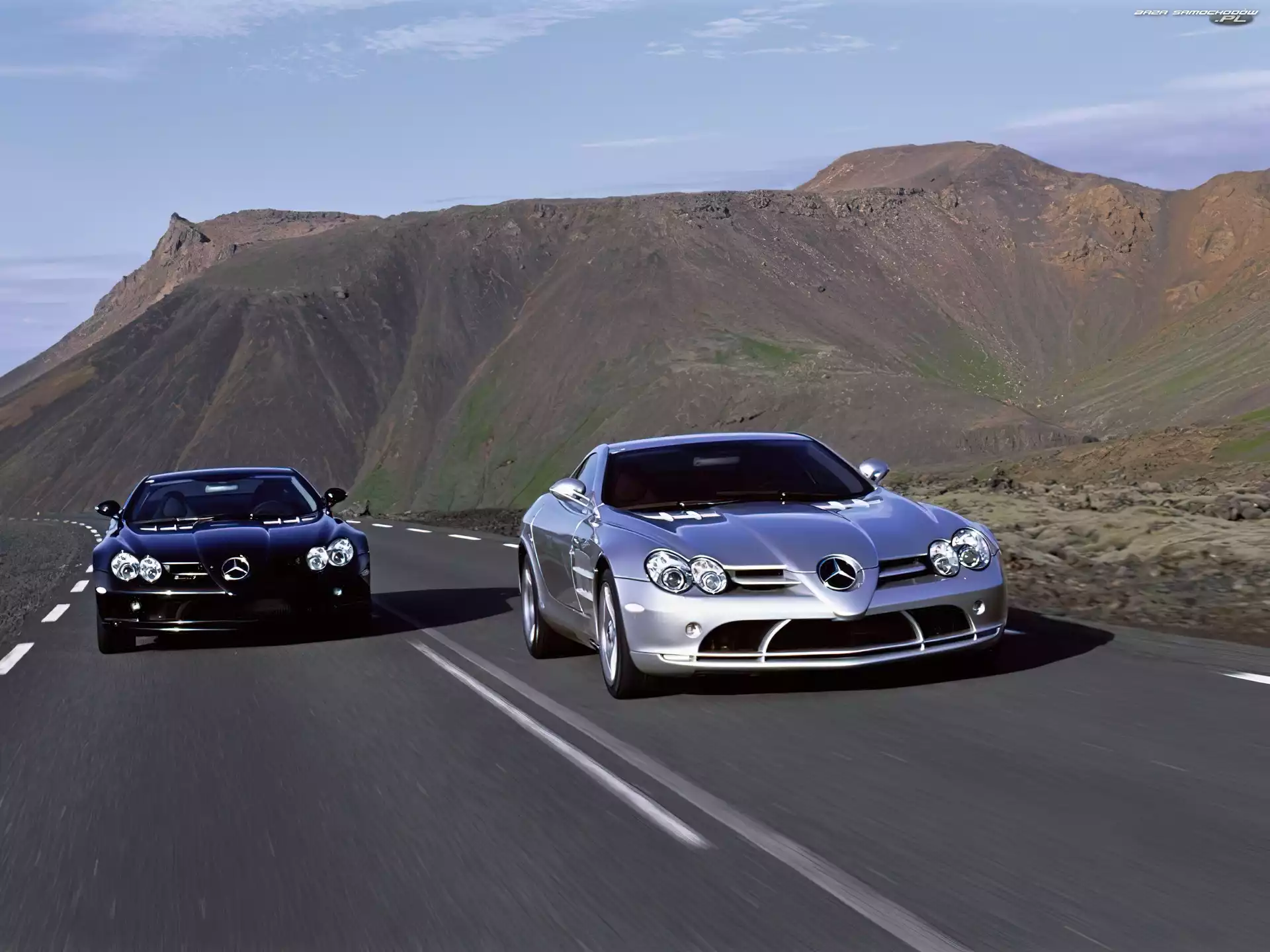 Mercedes SLR, Droga, Góry Niemcy, Mercedes Benz SLR Mercedes SLR, Srebrny Dwa SLR Mercedes SLR Mercedes SLR Drzwi, Mercedes SLR, Unoszone Mercedes SLR Mercedes SLR, Brabus Mercedes SLR, Wirtualny, Tuning SLR, Czarny, Mercedes Mclaren, Mercedes Benz SLR Mercedes-Benz McLaren SLR Dyfuzor, McLaren Mercedes SLR